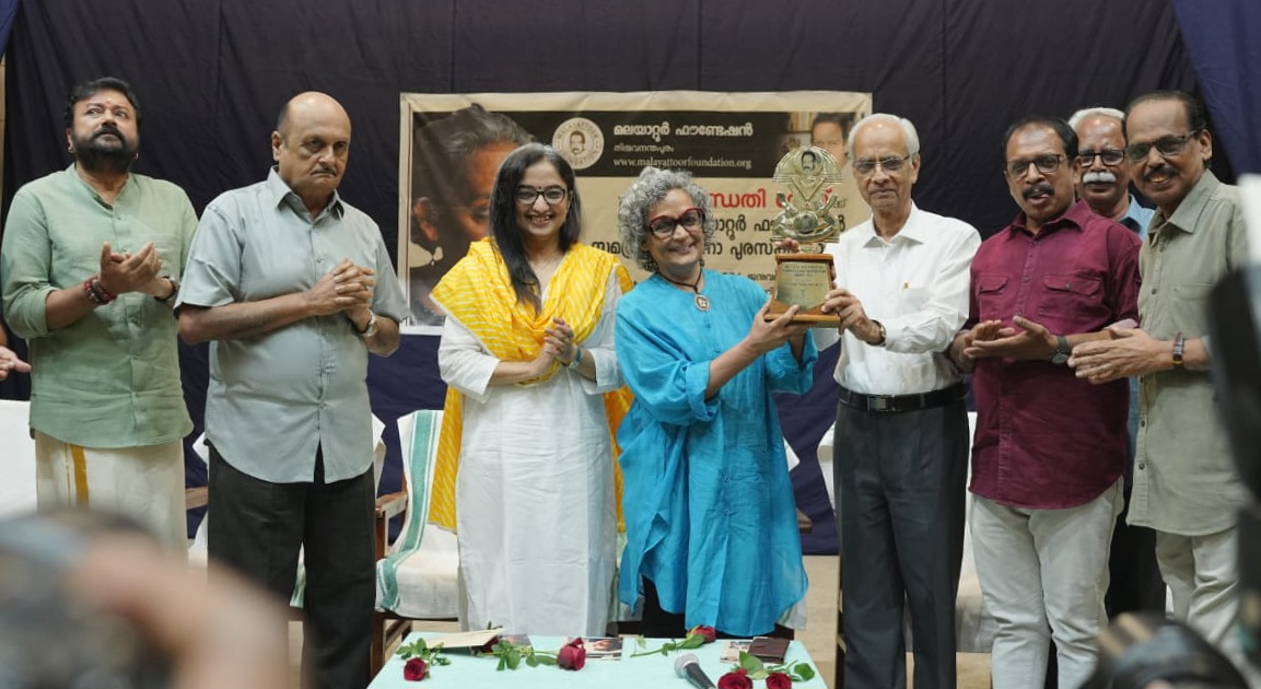 Presentation of Malayattoor Foundation Comprehensive Contribution Award 2025 to Ms. ARUNDHATI ROY by Shri, K. Jayakumar on 28-01-2026 at State Central Library Auditorium, Thiruvananthapuram.